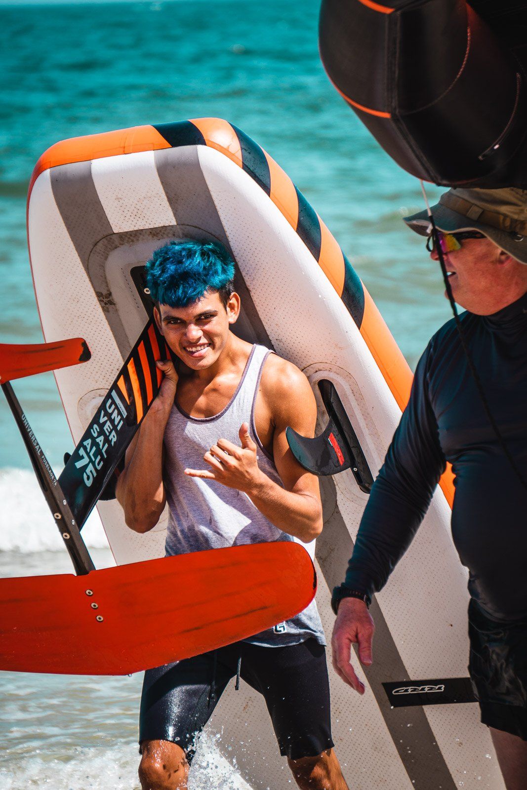 Learning to kitesurf can be an exciting and rewarding experience. Here are some general steps you can follow to learn how to kitesurf: 1. Take a lesson from a certified kitesurfing instructor. This will give you the basic knowledge and skills you need to get started, including how to fly a kite, how to launch and land, and how to control the kite and board. 2. ractice flying a kite on land. Before you get on a board, it's important to learn how to control the kite and generate power. You can practice flying the kite on land to get a feel for how it responds to the wind and how to steer it. 3. Start with a trainer kite. A trainer kite is a small, two-line kite that is designed for learning. You can use a trainer kite to practice kite control and body dragging, which is moving through the water while being pulled by the kite.